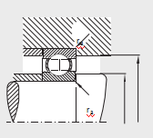 The dimension tables give the maximum radius dimension ra and the diameters of the abutment shoulders Da, da.