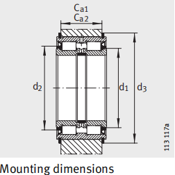 Sealing rings on both sides protect the running system against contamination and moisture.The cylindrical roller bearings are greased with a lithium complex soap grease to GA08 and can be relubricated via the outer and inner ring.